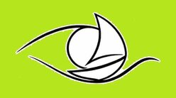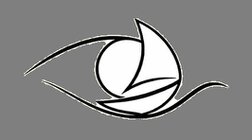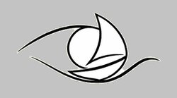 ロゴマークは、さまざまな色(青(緑)、白、黒)に変わる海(青そこひー緑内障、